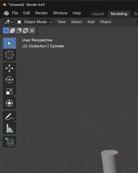 Shown below are two Cylinder Objects, each added one in the Layout Workspace and one in the Modeling Workspace, and both under the Object Mode Drop Down Menu. Notice how two Cylinder Objects appear in the Scene Collection Tree.